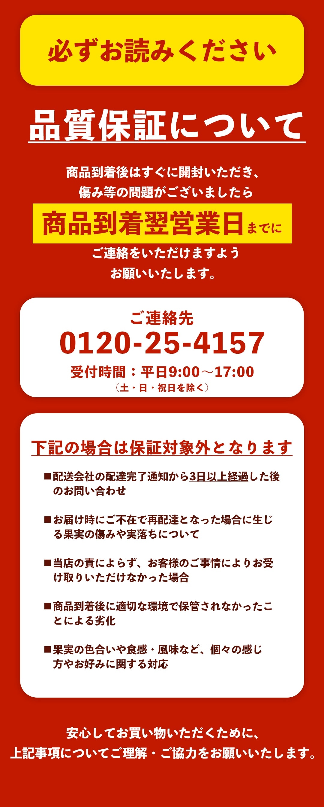 ※商品到着後は速やかに開封してください。
