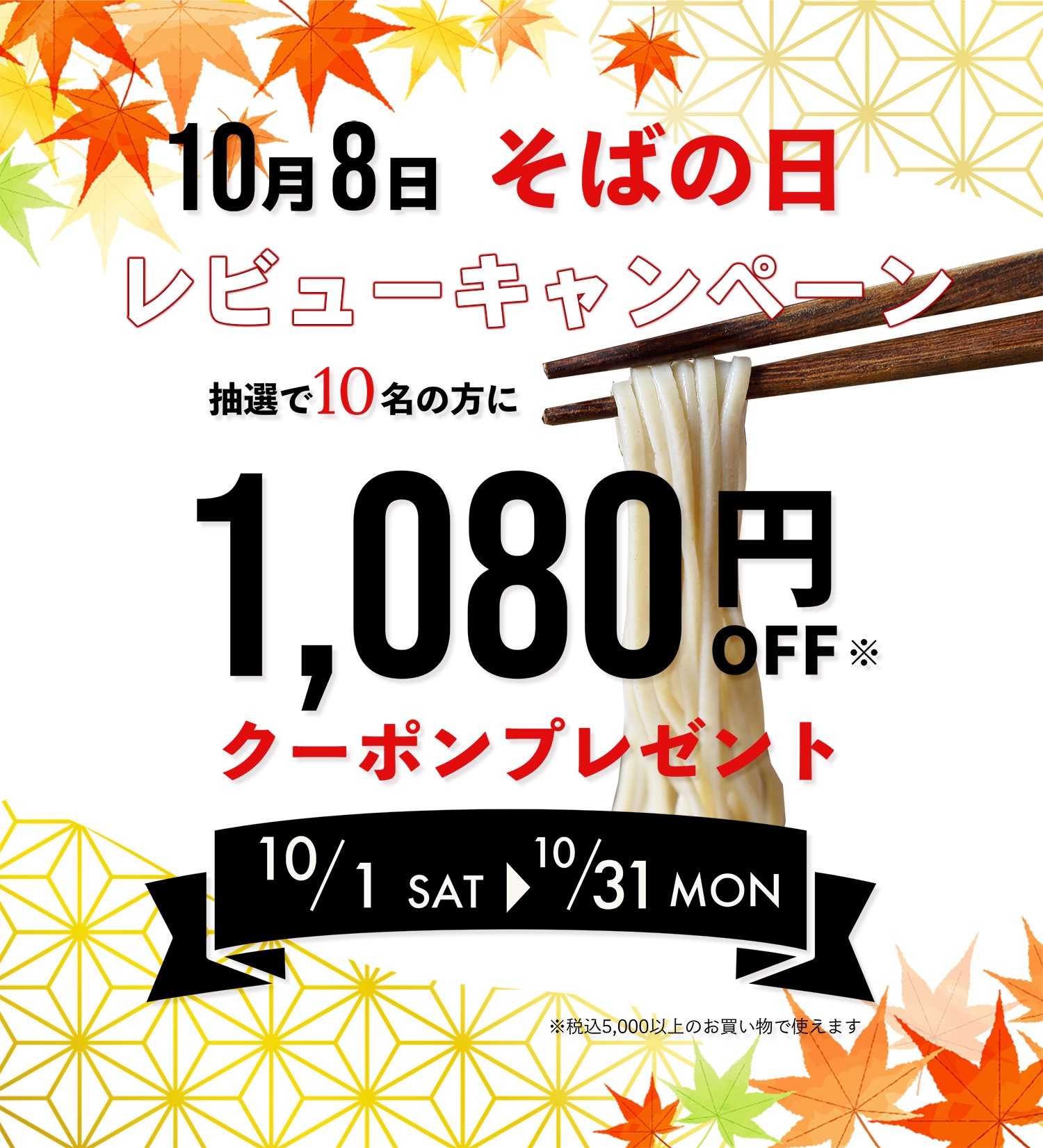 10/8の【そばの日】とオンラインショップのリニューアルを記念して、限定セールとお得なクーポンが当たるレビューキャンペーンを実施します!
